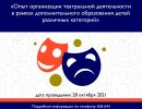 Уважаемые коллеги! Сообщаем Вам о запланированном образовательном вебинаре «Опыт организации театральной деятельности в рамках