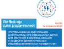 Внимание Запланирован образовательный вебинар для РОДИТЕЛЕЙ «Использование сертификата дополнительного образования детей для обучения в