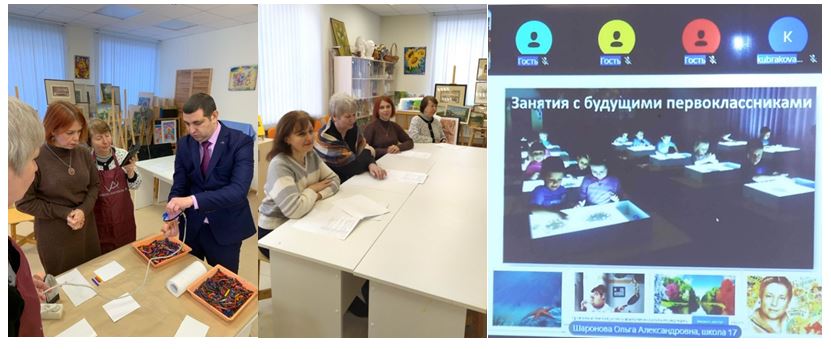 Для обмена методическими находками на площадке ГКОУ «Волгоградская школа-интернат «Надежда» встретились члены секции педагогов изобразительного искусства и декоративно-прикладного творчества. Доклады из опыта работы представили десять учителей, реализующие адаптированные программы в коррекционных образовательных учреждениях и общеобразовательных школах Волгограда, Волжского, Нижнего Чира и Урюпинска. Нестандартный опыт на уроках ИЗО с использованием техники «Sand-art» в классе для обучающихся с нарушением зрения продемонстрировала педагог средней школы №17 г. Волжского. «Оборудовав рабочие места световыми столами с песком, мы вместе с ребятами создаем мультипликационные сюжеты об окружающем мире, о родине, о семье сопровождая чтением стихов и мелодией. Это помогает обучающимся социализироваться и одновременно получать психологическую разгрузку», — сообщила присутствующим Шаронова Ольга Александровна. Об особенностях работы с обучающимися с нарушением слуха рассказала присутствующим Карпова Вера Николаевна, учитель ГКОУ «Волгоградская школа-интернат №7». Применение компьютерных программ по виртуальной лепке и росписи глиняной посуды в рамках народного творчества познакомила педагог Егорова Маргарита Анатольевна, учитель ГКОУ «Волжская школа-интернат».