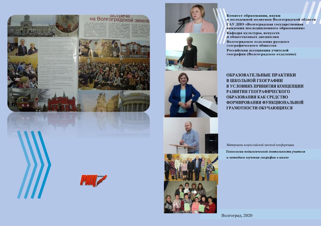 30 апреля 2020 г. состоялась заочная региональная конференция учителей географии «Образовательные практики в школьной географии в условиях принятия Концепции развития географического образования как средство формирования функциональной грамотности обучающихся», организованная в соответствии с приказом комитета образования, науки и молодежной политики Волгоградской области от 3 февраля 2020 года № 77 «О реализации мероприятий по модернизации технологий и содержания обучения в соответствии с новым федеральным государственным образовательным стандартом посредством разработки концепций модернизации конкретных областей, поддержки региональных программ развития образования и поддержки сетевых методических объединений в рамках государственной программы Российской Федерации «Развитие образования», государственное автономное учреждение дополнительного профессионального образования «Волгоградская государственная академия последипломного образования», по инициативе кафедры культуры, искусства и общественных дисциплин.