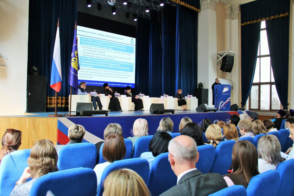 Председатель Синодального отдела религиозного образования и катехизации Русской Православной Церкви митрополит Екатеринбургский Евгений в своём выступлении обратил внимание на воспитательный потенциал курса «Основы православной культуры». Владыка привёл статистические данные ВЦИОМ по экстремистским подростковым движениям, количеству детских суицидов и предложил рассматривать преподавание модуля как одно из важнейших направлений духовно-нравственного воспитания. Проведя анализ содержания учебника «Основы православной культуры. 4 класс» под научной редакцией О.Ю. Васильевой, митрополит Евгений убедительно показал слушателям, какой безальтернативный педагогический потенциал имеется в каждом уроке модуля.