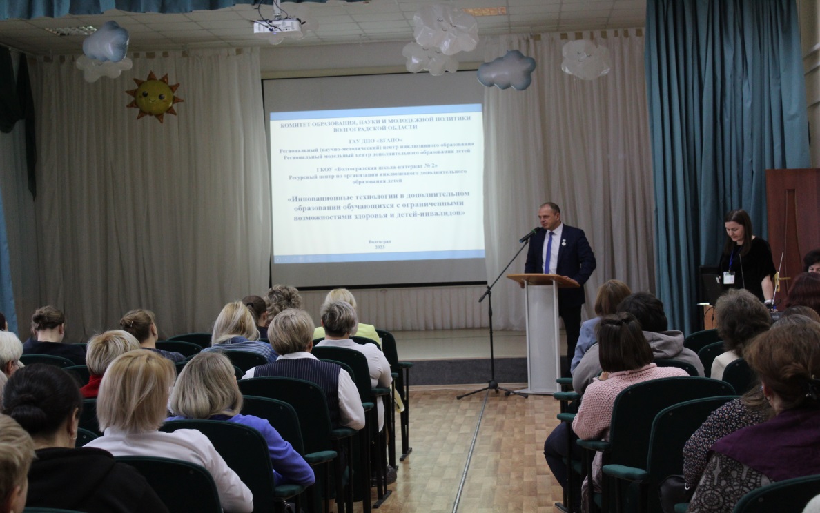 23 ноября 2023 г. на базе ГКОУ «Волгоградская школа-интернат №2» состоялся межрегиональный семинар «Инновационные технологии в дополнительном образовании обучающихся с ограниченными возможностями здоровья и детей-инвалидов», организаторами которого выступили ГАУ ДПО «ВГАПО» Региональный (научно – методический) центр инклюзивного образования, ГАУ ДПО «ВГАПО» Региональный модельный центр дополнительного образования детей в Волгоградской области и ГКОУ «Волгоградская школа – интернат №2» Ресурсный центр по организации инклюзивного дополнительного образования детей.