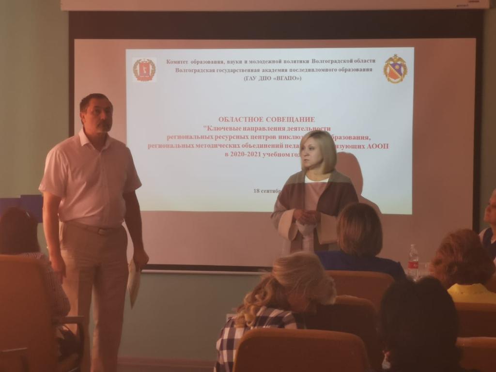 18 сентября 2020 на базе ГАУ ДПО «Волгоградская академия последипломного образования» прошло областное совещание «Ключевые направления деятельности региональных ресурсных центров инклюзивного образования, региональных методических объединений педагогов, реализующих АООП в 2020-2021 учебном году».