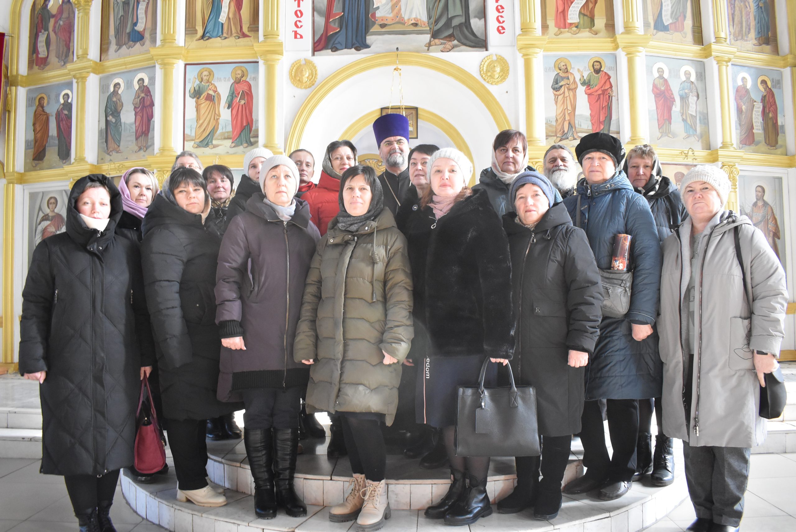 19 февраля 2025 года группа педагогов Городищенского района обучающихся на курсах 04/4 «Предметное содержание и методика преподавания модуля «Основы православной культуры в четвертом классе» приняла участие в учебной экскурсии «Православный храм: устройство, архитектура и потенциал для воспитательной деятельности». Учебную экскурсию провёл благочинный Городищенского округа, настоятель храма иконы Божией Матери «Всех скорбящих Радость» протоиерей Алексий Кузнецов. Учителя, ориентированные на преподавание модуля «Основы православной культуры» в начальных классах в 2025/2026 учебном году, познакомились с храмовой архитектурой, узнали особенности устройства храма, рассмотрели иконы на стенах храма и в иконостасе. С большим интересом педагоги знакомились со священническими облачениями. Отдельным разделом экскурсии было ознакомление с историей храма и выявление краеведческого компонента для организации исследовательской работы с обучающимися школьниками в рамках творческих заданий модуля «Основы православной культуры».