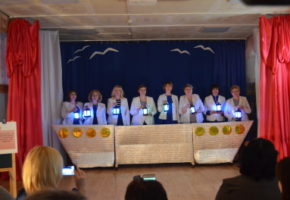 Выступление коллектива педагогов (Быкова О.Н., Лаптенок Т.С., Евдокимова Е.Н., Пузикова Н.И., Новикова Т.П., Жидкова Л.И., Ершова Е.Г., Отришко Н.И., Шишкина С.В., Соколова Г.А.) прошло в форме педагогического театра «Море образования»