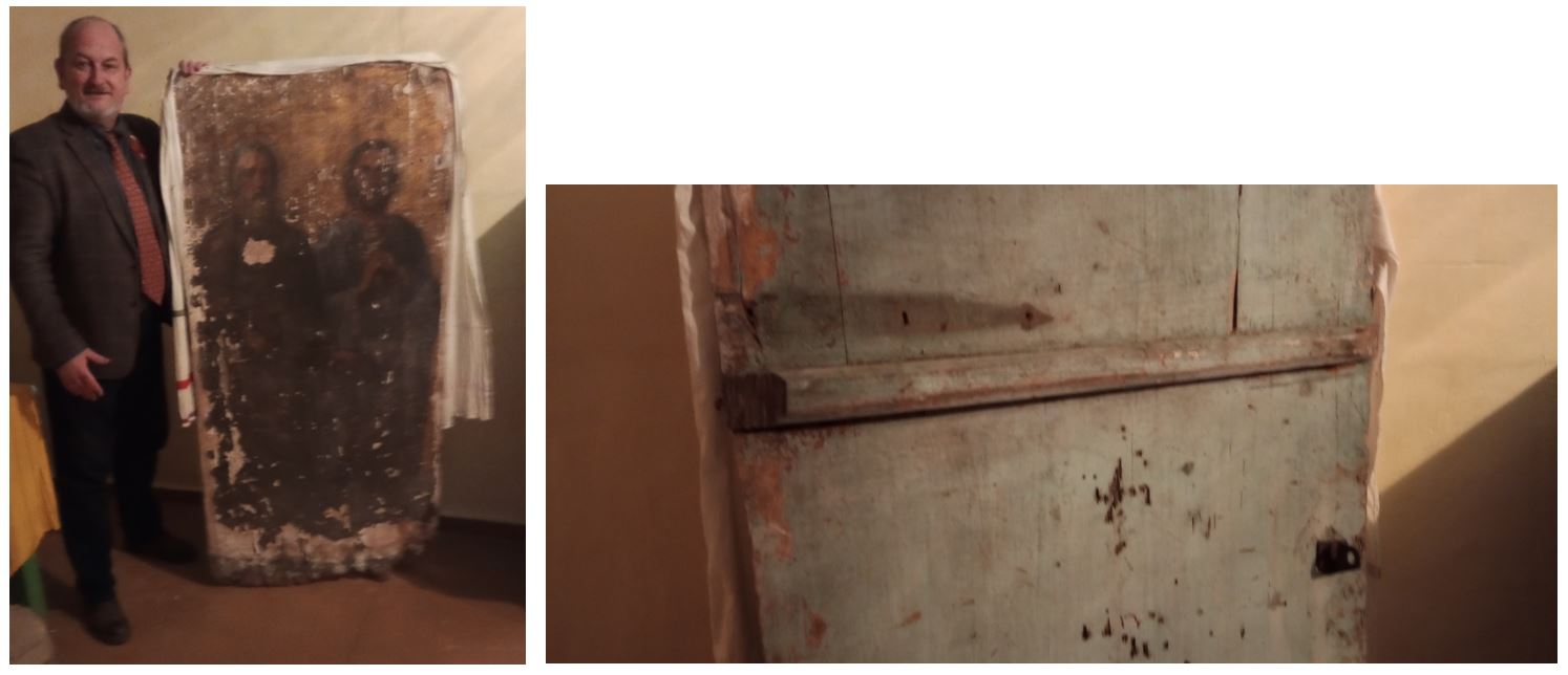 По всей видимости, ранее она находилась в разрушенной в конце 30-х годов XX века Христорождественской церкви. Икона многие годы служила дверцей в сарае одного из местных жителей, о чем свидетельствуют ржавые следы петель на ее обороте…