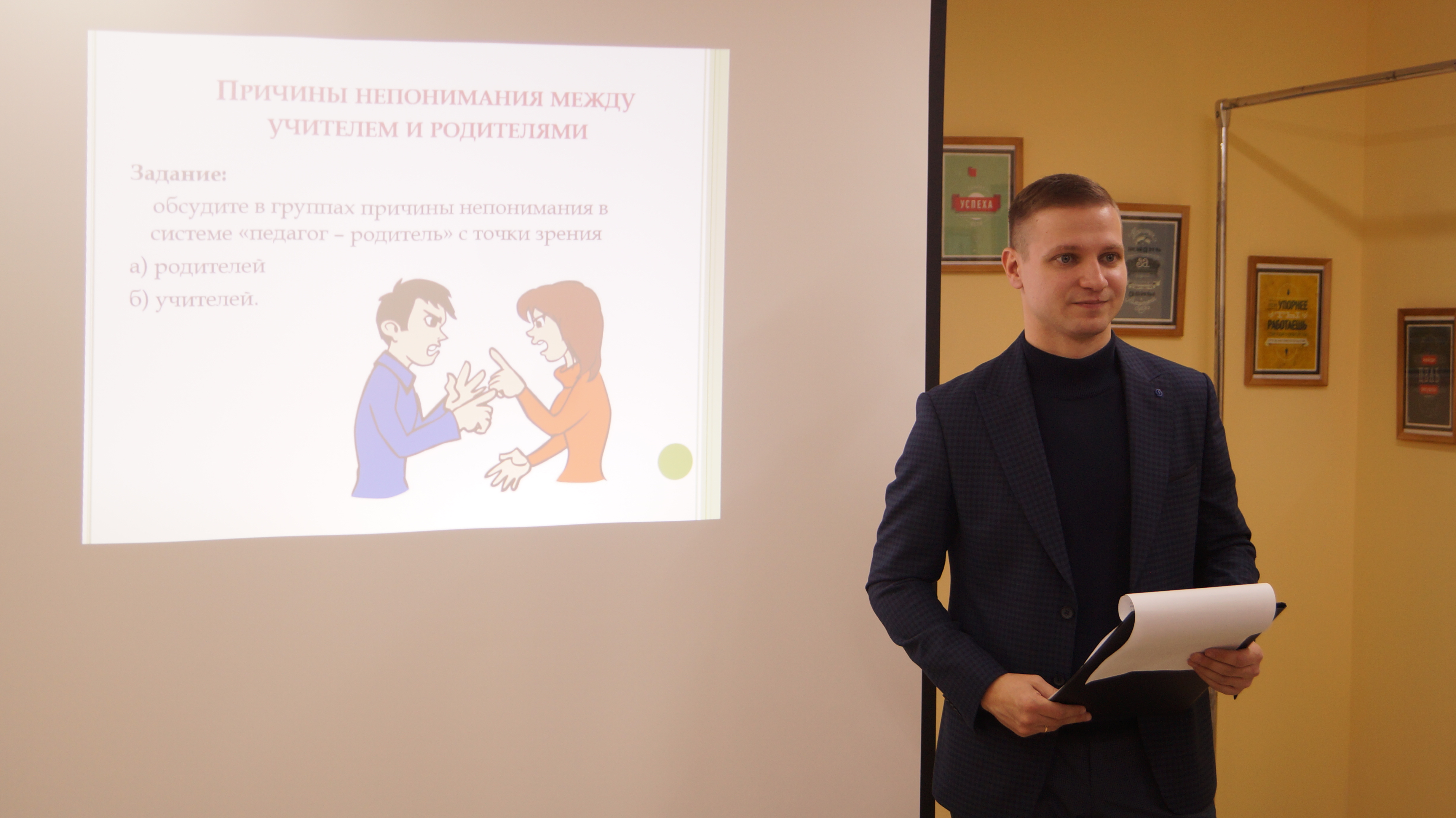 В ходе семинара участникам удалось актуализировать ключевые навыки успешного педагога в работе с родителями, научиться эффективно применять их. Молодые педагоги познакомились с активными формами работы с родителями и условиями их применения на родительском собрании. Работая в группах, педагоги провели мини-исследование «Взаимоотношения педагогов и родителей».