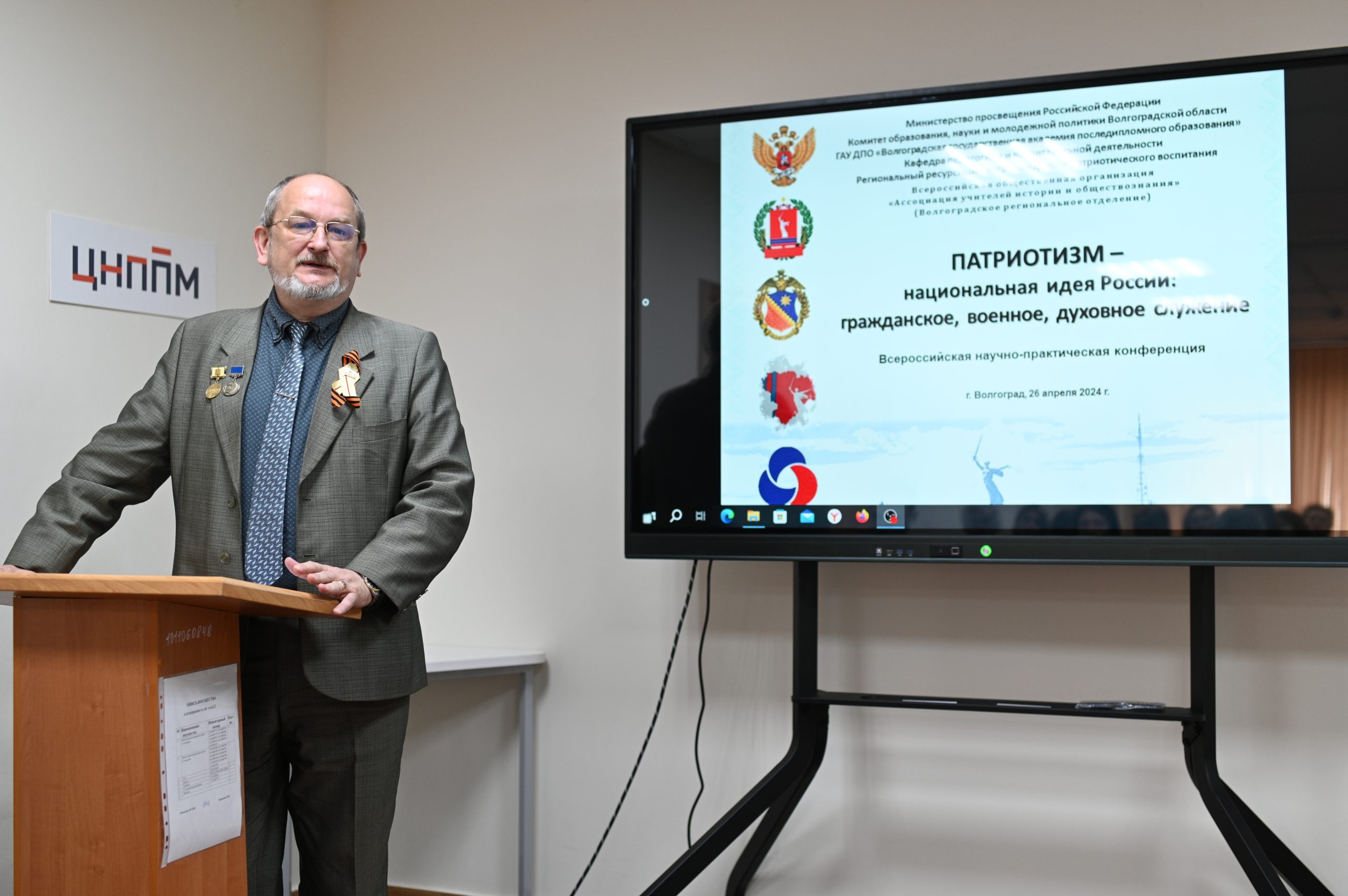В рамках исполнения Указа Президента Российской Федерации В.В. Путина от 9 ноября 2022 г. № 809 «Об утверждении Основ государственной политики по сохранению и укреплению традиционных российских духовно-нравственных ценностей» Волгоградским региональным ресурсным центром гражданско-патриотического воспитания, кафедрой педагогики и воспитательной деятельности ГАУ ДПО «ВГАПО», Волгоградским отделением «Ассоциации учителей истории и обществознания» при поддержке Волгоградской областной думы, Общественной палаты Волгоградской области, Комитета образования, науки и молодежной политики Волгоградской области, Волгоградской областной организации ветеранов (пенсионеров) войны, труда, Вооруженных Сил и правоохранительных органов была организована и проведена 26 апреля 2024 г. Всероссийская научно-практическая конференция «Патриотизм – национальная идея России: гражданское, военное, духовное служение».