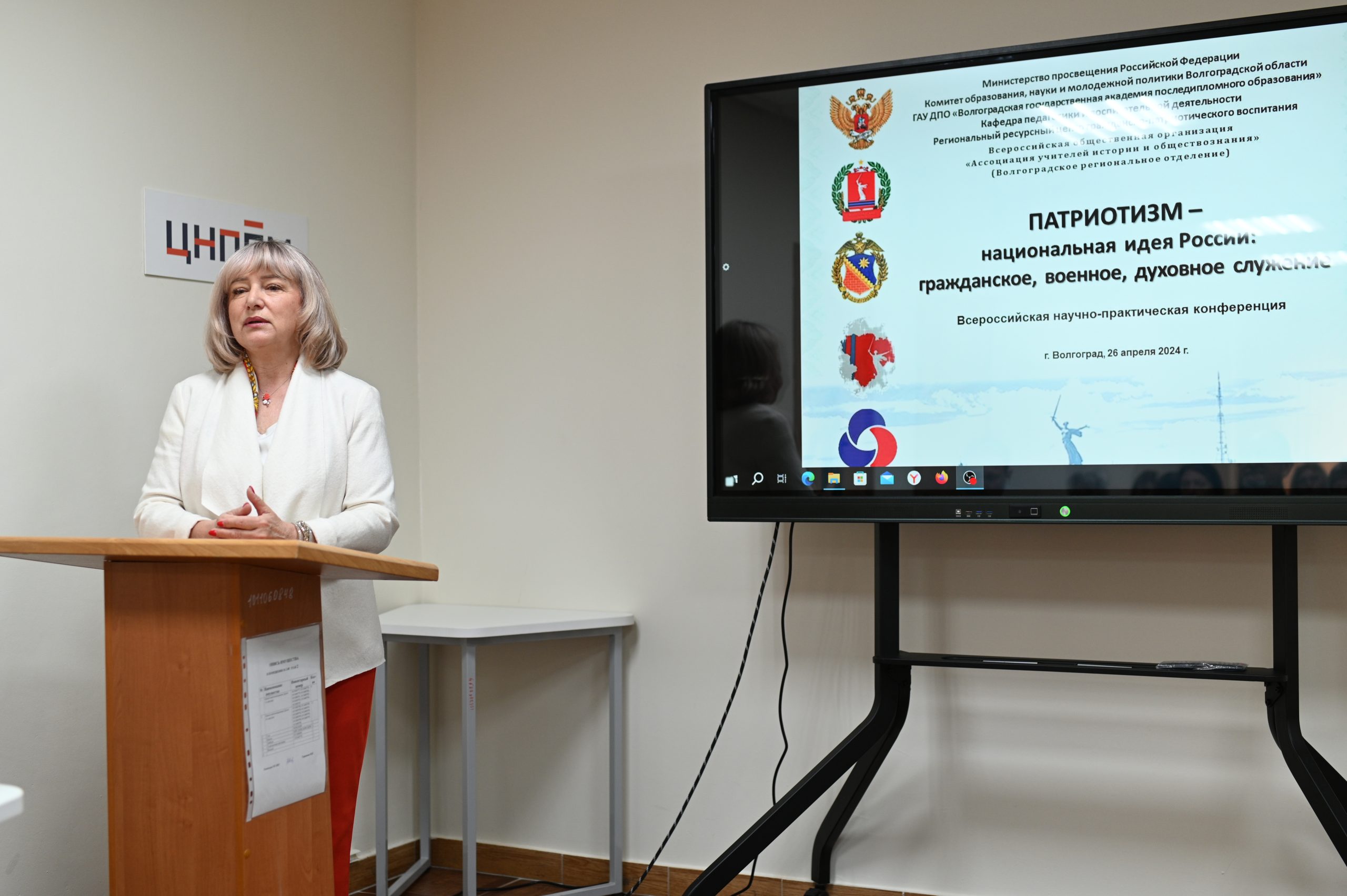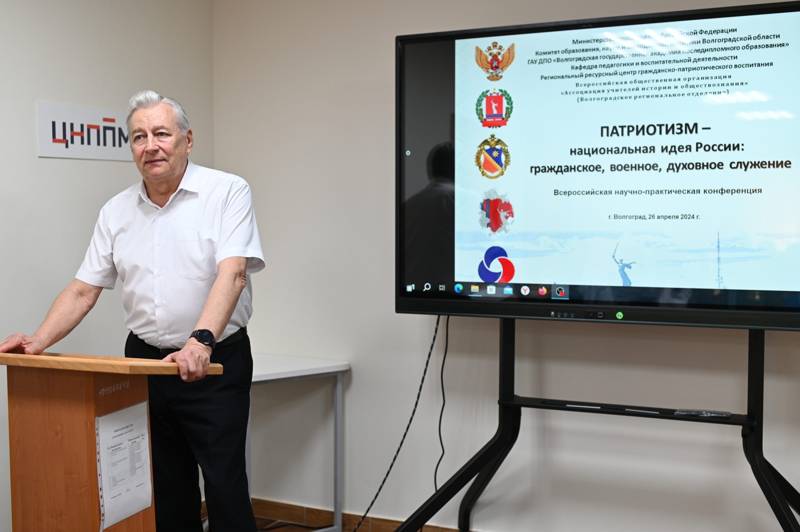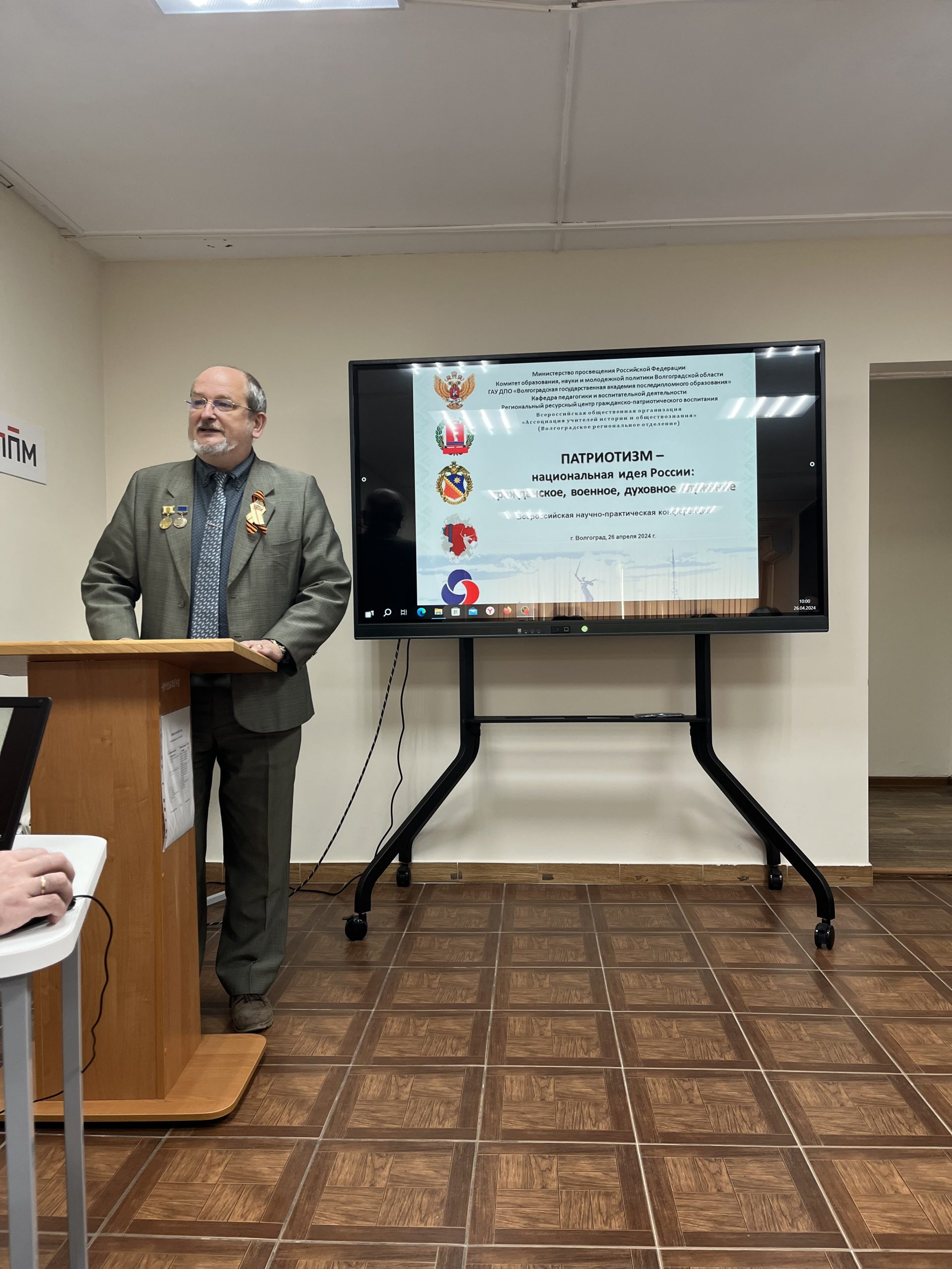 В рамках исполнения Указа Президента Российской Федерации В.В. Путина от 9 ноября 2022 г. № 809 «Об утверждении Основ государственной политики по сохранению и укреплению традиционных российских духовно-нравственных ценностей» Волгоградским региональным ресурсным центром гражданско-патриотического воспитания, кафедрой педагогики и воспитательной деятельности ГАУ ДПО «ВГАПО», Волгоградским отделением «Ассоциации учителей истории и обществознания» при поддержке Волгоградской областной думы, Общественной палаты Волгоградской области, Комитета образования, науки и молодежной политики Волгоградской области, Волгоградской областной организации ветеранов (пенсионеров) войны, труда, Вооруженных Сил и правоохранительных органов была организована и проведена 26 апреля 2024 г. Всероссийская научно-практическая конференция «Патриотизм – национальная идея России: гражданское, военное, духовное служение».