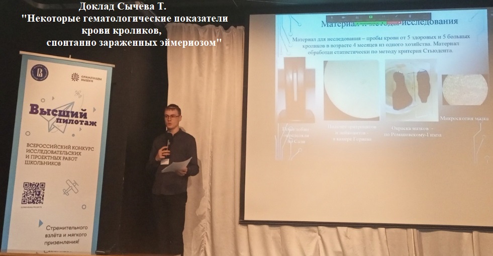 и ученик ЧОУ «Русско-американская школа» г. Волжского Сычев Тимофей (работа «Некоторые гематологические показатели кроликов, спонтанно зараженных эймериозом», руководитель доцент каф. естественнонаучных дисциплин, информатики и технологии ВГАПО Степанчук Н.А.).