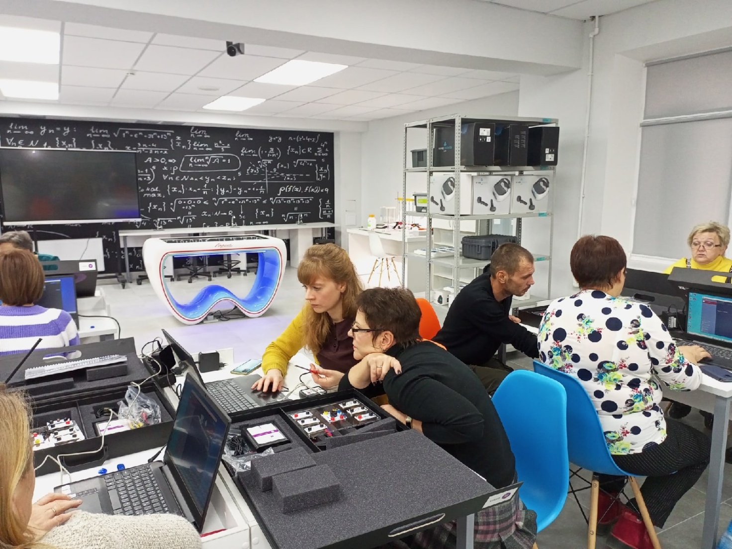 В рамках реализации дополнительной профессиональной программы повышения квалификации «Реализация образовательных программ с использованием оборудования центров «Точка роста» по биологии, физики и химии» прошла стажировка в технопарке и кванториуме ФГБОУ ВО «Волгоградский государственный социально-педагогический университет». Учителя не только знакомились с оборудованием образовательных центров «Точка роста», но и сами осваивали методы использования цифрового оборудования в урочной и внеурочной деятельности.