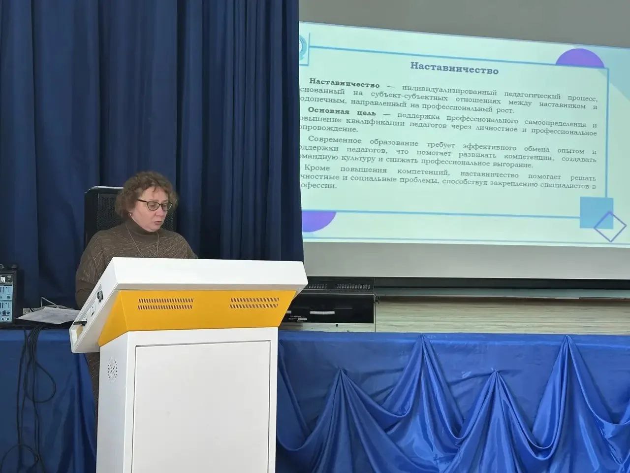 Сахаровская Юлия Павловна, методист МБОУ ГСШ № 3 р.п. Городище, рассказала Создание условий для обмена опытом и коллективного профессионального роста через наставничество и коллаборативные практики.