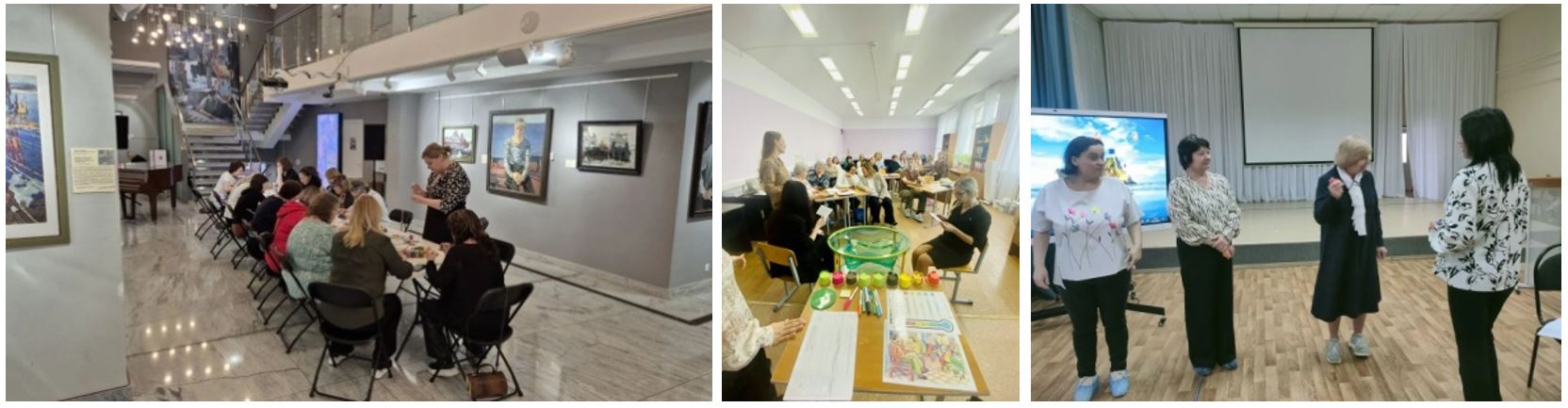 Традиционно в музее изобразительных искусств им. И.И. Машкова состоялось завершающее заседание методического сообщества учителей изобразительного искусства. Педагоги в ходе обмена опытом пополнили свою методическую копилку. Были представлены мастер-классы и доклады о роли изобразительной деятельности в социализации обучающихся с ограниченными возможностями здоровья. Серединцева Татьяна, учитель ГКОУ «Дубовская школа-интернат», воодушевленно поделилась с коллегами идеей по организации коворкинг пространства, где обучающиеся могут провести перемену или кружковое занятие. Под грамотным руководством педагога обучающиеся придумывают кукольные сценки с поучительными историями и лепят героев из непачкающегося пластилина. Степанчук Оксана, учитель изогимназии № 17 Волгограда, член общественной наблюдательной комиссии Волгоградской области, отметила, что социо-культурные технологии активно представлены в практике по социализации и адаптации несовершеннолетних правонарушителей с ОВЗ. Создавая комнатные арт-объекты и живописные этюды ребята узнают много нового, находят свое увлечение. В завершении мероприятия сотрудники учреждения культуры организовали содержательную экскурсию по памятной выставке Юрия Боско, художника писавшего портреты и пейзажи в городах на Волге.