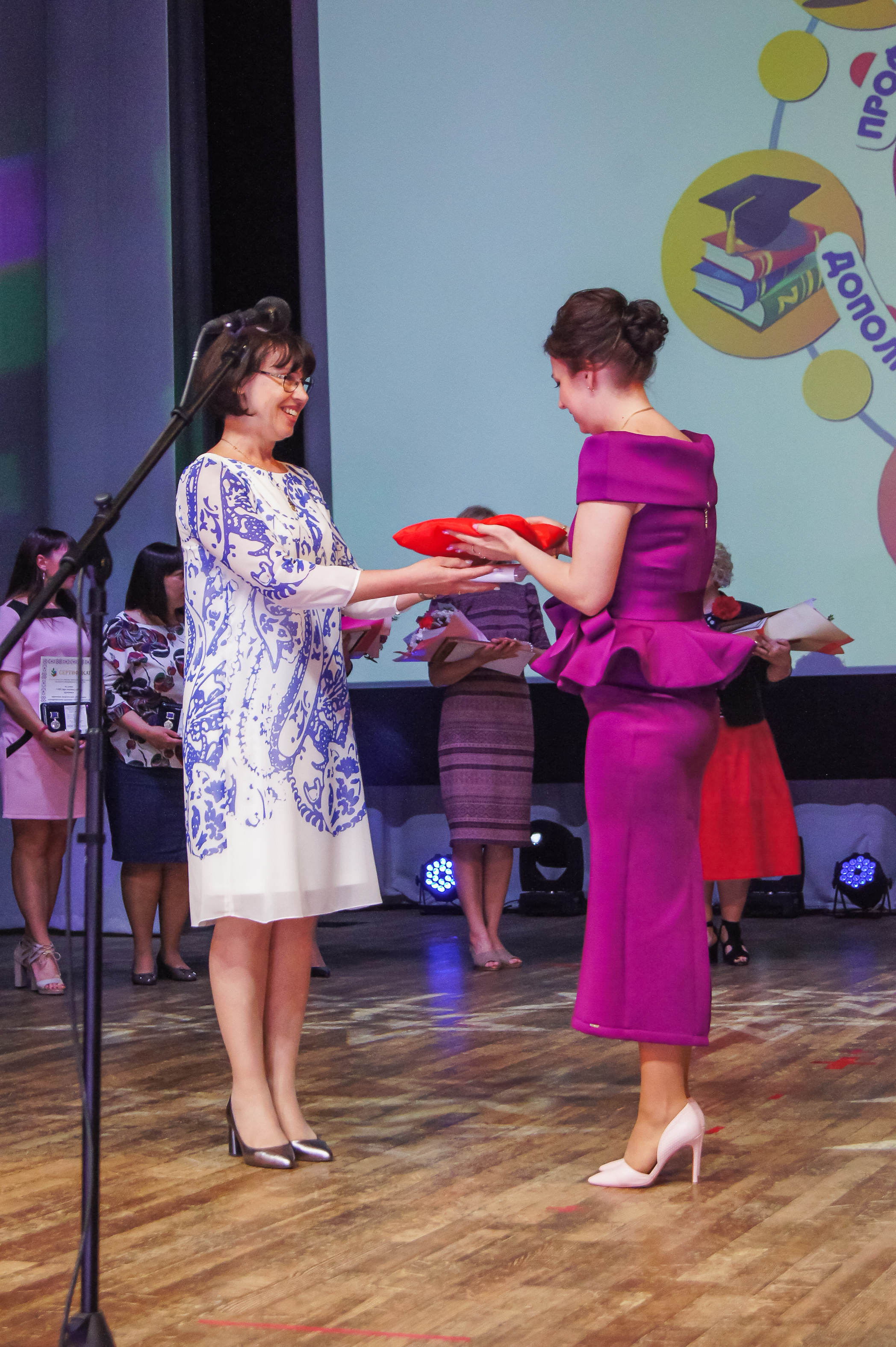 Участников и победителей конкурса поприветствовали первый заместитель комитета образования, науки и молодежной политики науки Волгоградской области Е.Г. Логойдо и председатель Волгоградской областной организации профсоюза работников народного образования и науки Российской Федерации Л.Л. Кочергина, которые затем приступили к церемонии награждения.