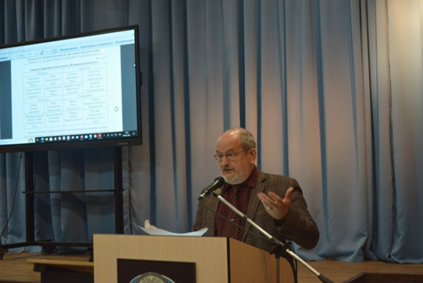 Пленарный доклад чл.-корр. МАНПО, д. филос. н., проф., зав. кафедрой педагогики и воспитательной деятельности ГАУ ДПО «»ВГАПО Д.В. Полежаева был посвящен анализу русского менталитета как ценностно-смысловой основы общероссийской гражданской идентичности.