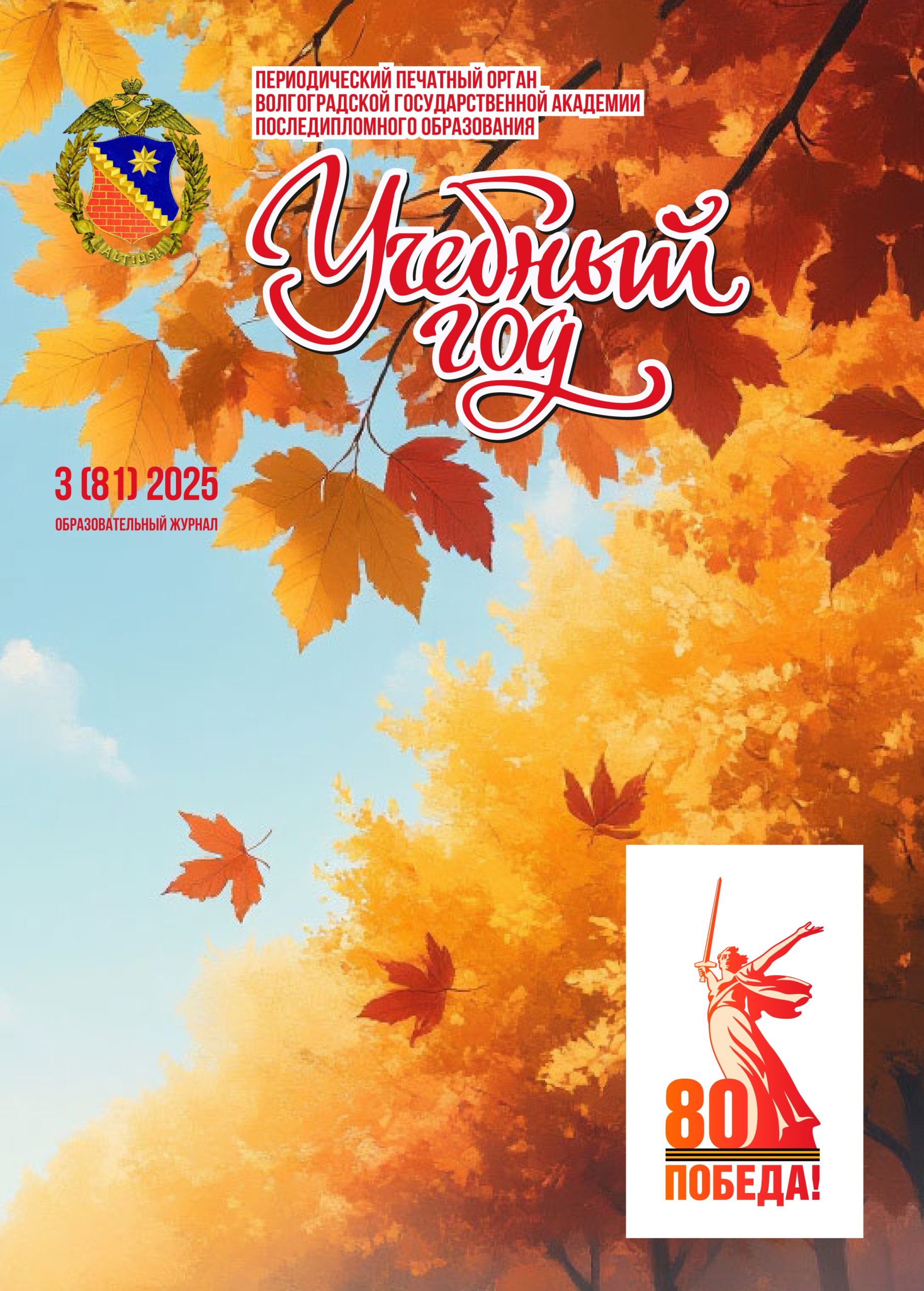 Образовательный журнал № 3 (81) 2025 10 сентября 2025 года Основан в мае 2001 года Выходит 4 раза в год Журнал входит в систему Российского индекса научного цитирования (РИНЦ); лицензионный договор № 166-04/2017 от 7 апреля 2017 года. Международный стандартный номер сериального издания — ISSN 1811-4865 Учредитель: Государственное автономное учреждение дополнительного профессионального образования «Волгоградская государственная академия последипломного образования» (ГАУ ДПО «ВГАПО») Издатель: ГАУ ДПО «ВГАПО» Журнал зарегистрирован в управлении Федеральной службы по надзору в сфере связи, информационных технологий и массовых коммуникаций по Волгоградской области и Республике Калмыкия Свидетельство о регистрации ПИ № ТУ 34-00604 Главный редактор С.В. Куликова, д-р пед. наук , проф., почетный профессор РАО Зам. главного редактора А.Н. Кузибецкий канд. пед. наук , проф., чл.-корр. МАНПО, заслуженный учитель России Редактор Г.Л. Пикус |