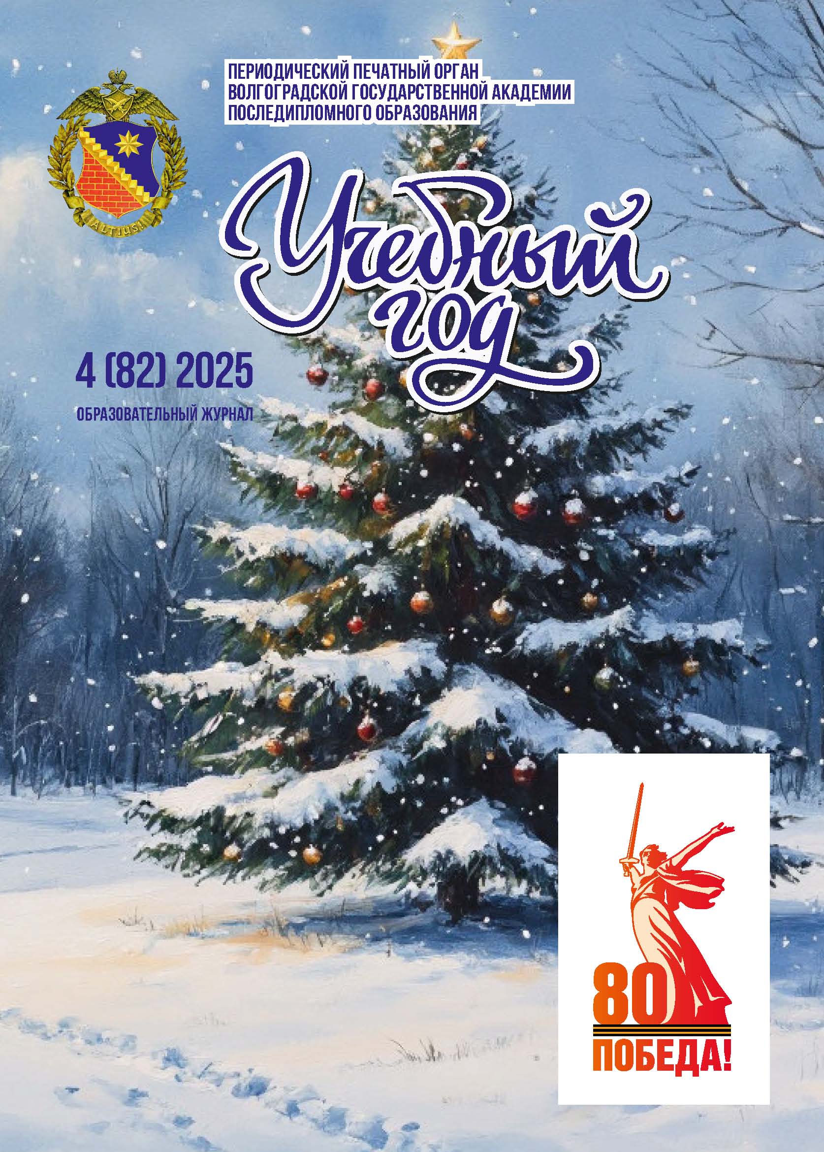 Образовательный журнал № 4 (82) 2025 18 декабря 2025 года Основан в мае 2001 года Выходит 4 раза в год Журнал входит в систему Российского индекса научного цитирования (РИНЦ); лицензионный договор № 166-04/2017 от 7 апреля 2017 года. Международный стандартный номер сериального издания — ISSN 1811-4865 Учредитель: Государственное автономное учреждение дополнительного профессионального образования «Волгоградская государственная академия последипломного образования» (ГАУ ДПО «ВГАПО») Издатель: ГАУ ДПО «ВГАПО» Журнал зарегистрирован в управлении Федеральной службы по надзору в сфере связи, информационных технологий и массовых коммуникаций по Волгоградской области и Республике Калмыкия Свидетельство о регистрации ПИ № ТУ 34-00604 Главный редактор С.В. Куликова, чл.-корр. РАО, д-р пед. наук , проф. Зам. главного редактора А.Н. Кузибецкий канд. пед. наук , проф., чл.-корр. МАНПО, заслуженный учитель России Редактор Г.Л. Пикус |
