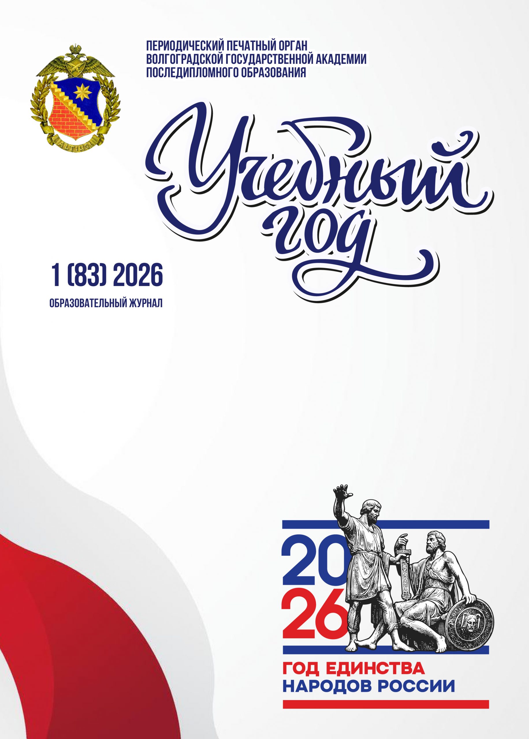 Образовательный журнал № 1 (86) 2026 23 марта 2026 года Основан в мае 2001 года Выходит 4 раза в год Журнал входит в систему Российского индекса научного цитирования (РИНЦ); лицензионный договор № 166-04/2017 от 7 апреля 2017 года. Международный стандартный номер сериального издания — ISSN 1811-4865 Учредитель: Государственное автономное учреждение дополнительного профессионального образования «Волгоградская государственная академия последипломного образования» (ГАУ ДПО «ВГАПО») Издатель: ГАУ ДПО «ВГАПО» Журнал зарегистрирован в управлении Федеральной службы по надзору в сфере связи, информационных технологий и массовых коммуникаций по Волгоградской области и Республике Калмыкия Свидетельство о регистрации ПИ № ТУ 34-00604 Главный редактор С.В. Куликова, чл.-корр. РАО, д-р пед. наук , проф. Зам. главного редактора А.Н. Кузибецкий канд. пед. наук , проф., чл.-корр. МАНПО, заслуженный учитель России Редактор Г.Л. Пикус |
