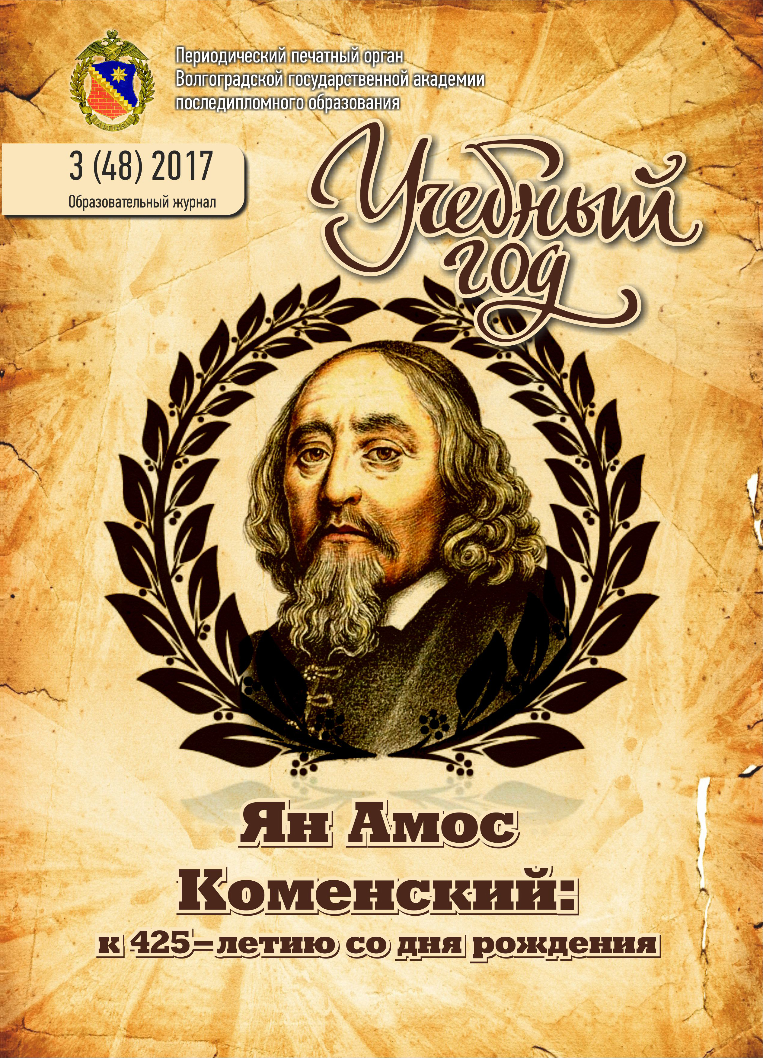 СОДЕРЖАНИЕ НОМЕРАСодержание Колонка главного редактора 3 75 лет началу победного контрнаступления под Сталинградом 5 В Волгоградской области готовятся к 75-летию Победы под Сталинградом 5 В Волгоградской области продолжатся поисковые работы 6 Патриотическая акция «Сталинград в моем сердце» 7 Международный образовательный проект «Мы напишем Ваши имена» 7 Алла Гаврилова Бой с неизвестностью 8 История педагогики и образования 10 Ян Коменский: великий реформатор системы образования (к 425-летию со дня рождения) 10 А.Н. Кузибецкий Технологизация педагогической деятельности в трудах Я.А. Коменского и современное образование 13 История подготовки и повышения квалификации учительских кадров в Волгоградской области 16 Особенности подготовки кадров учителей для школ Царицынской губернии в 1920 году. Историко-педагогические материалы 16 А.Н. Кузибецкий Волгоградская государственная академия последипломного образования: навстречу 90-летию. Истоки и история академии: 1916–1954 годы 19 Выдающиеся педагоги Волгоградской области 25 Народный учитель СССР Федор Федорович Слипченко 25 Документы 28 «О рекомендациях по сокращению и устранению избыточной отчетности учителей» 28 Личностно-профессиональное развитие 31 О.И. Васильева Личностно-профессиональное совершенствование педагога: из истории проблемы 31 Н.В. Лисевская, Л.В. Сергеева Воспитателю ДОУ для личностно-профессионального развития: вариативные технологии, формы, методы, виды и содержание образовательной деятельности 35 Применяем профессиональные стандарты 37 М.А. Святина Применение профессионального стандарта «Педагог» при разработке должностных инструкций 37 Н.В. Болотникова Региональный предметный модуль «Предметное обучение. География» 49 Н.И. Чеботарева Региональный предметный модуль «Предметное обучение. История» 51 Астрономия 54 В.А. Попова, О.М. Степанчук Преподавание учебного предмета «Астрономия» в 10–11 классах общеобразовательных организаций Волгоградской области в 2017–2018 учебном году 54 Реализуем «Стратегию развития воспитания»: воспитание правовой и языковой культуры детей 57 Ю.П. Сахаровская Повышение уровня правовой культуры учащихся и их родителей: роль образовательного учреждения и служб системы профилактики 57 Е.В. Захарова Воспитание языковой культуры ребенка на традициях семьи 60 Ж.Н. Куцая Развитие у учащихся интереса к чтению на уроках литературы 61 Н.В. Шефер Приобщение учащихся начальных классов к народной культуре 63 Формируем российскую гражданскую идентичность обучающихся 65 В.К. Скорикова Стратегия развития воспитания в Российской Федерации до 2025 года: инновационный потенциал 65 Н.М. Гарифуллина Формирование российской гражданской идентичности учащихся в контексте историко-культурного стандарта 67 Т.В. Ткаченко Формирование российской гражданской идентичности учащихся на коррекционно-развивающих занятиях по развитию зрения и охране зрительного восприятия 69 Реализуем Стратегию развития воспитания: дошкольное воспитание 73 Н.В. Руппель, С.А. Зотьева, А.В. Коноплева Личностное развитие ребенка-дошкольника на основе игровой технологии В.В. Воскобовича 73 Ю.Н. Денисова Развитие познавательной активности детей-дошкольников в проектной деятельности 75 Н.В. Кулакова, Н.В. Молоканова, И.Н. Конькова, О.В. Архипович Развитие творческих способностей детей с ограниченным